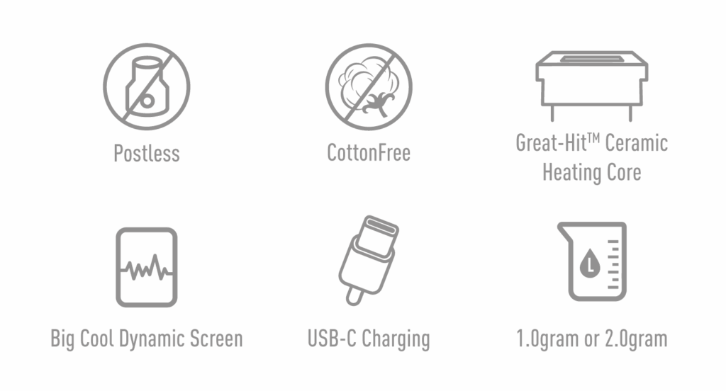 4. Exclusive Great-Hit™ Technology big cloud ceramic coil with no dry burn;
